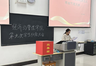 团委书记王晶宣读了《经济与管理学院第九次学生代表大会的选举办法》,团委副书记杨雯婕宣读了候选人名单,使全体代表能够全面了解候选人的情况。经过现场无记名投票和公平统计,最终选举产生了王景舒等12名渭南师范学院第九次学生代表大会代表。